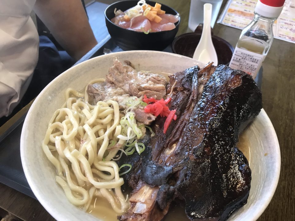 ソーキ と思ったらマグロの煮付けでした。鉄火丼付きです。