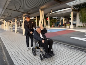 ホテルからパウロ秋元さん、ヨハネさんを空港にお送りします。