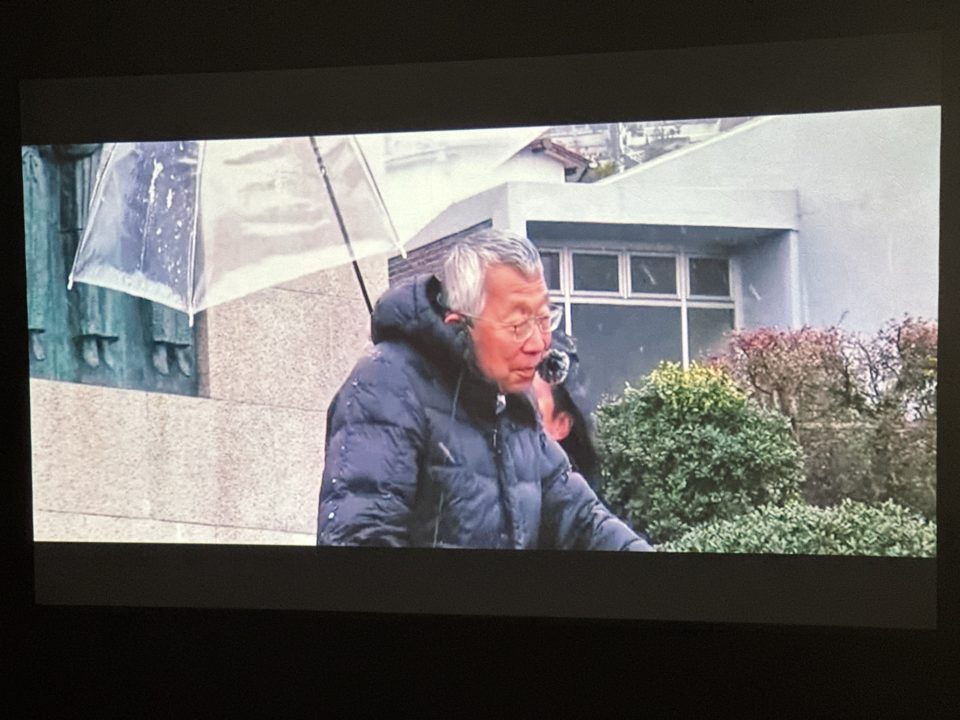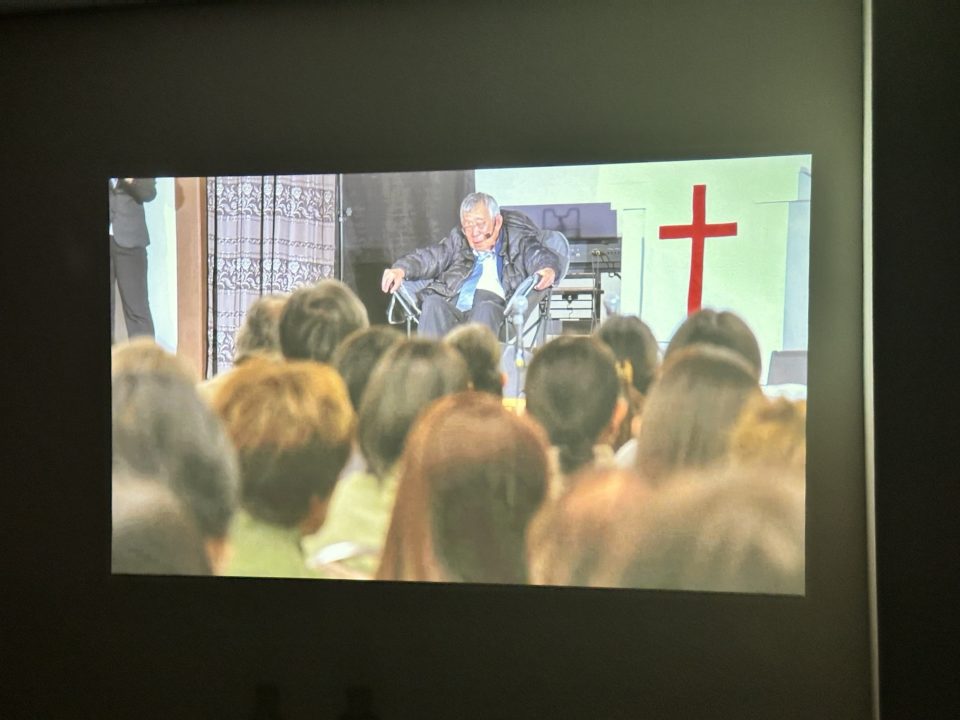 殉教聖会の映像を見ています