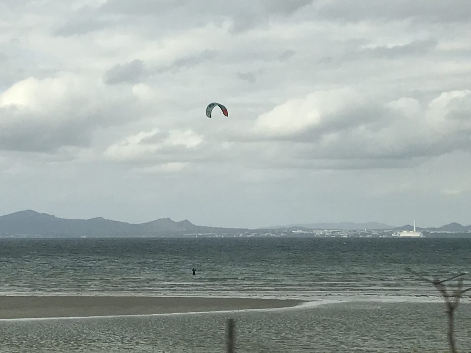 るかおてパラセーリングやってます。ウインドサーフィンの人たちもいました。風があるから絶好日和だったかも。