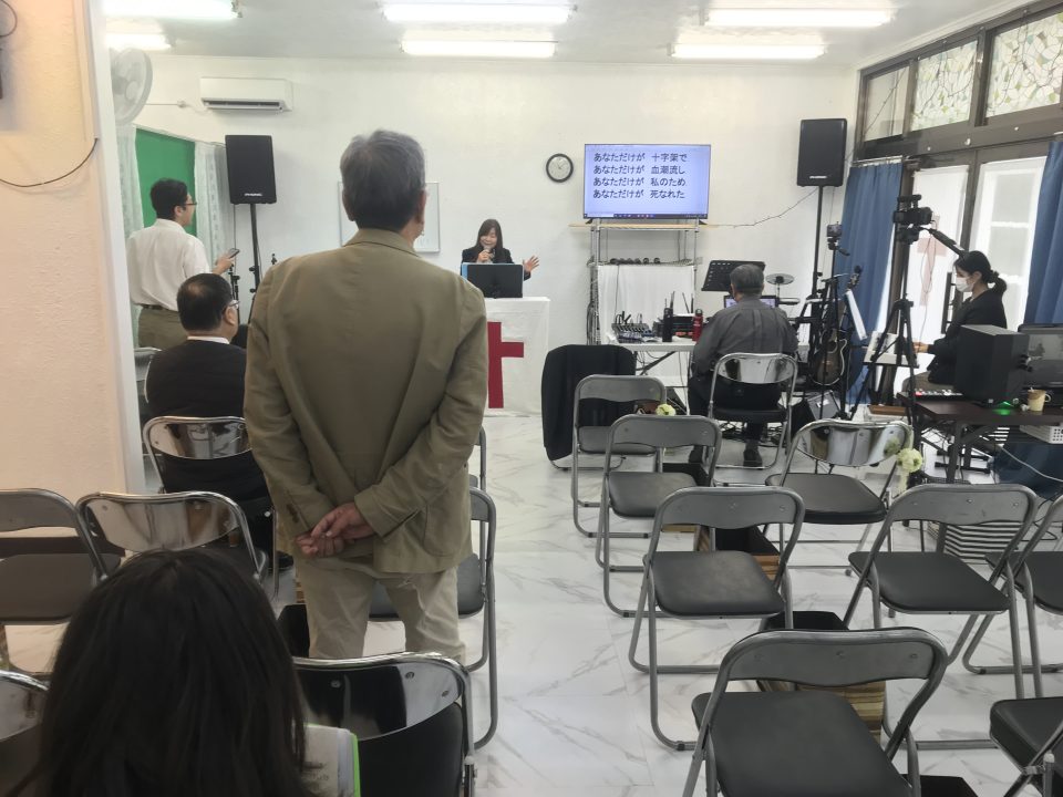 まもなく到着です。名護アンテオケ教会で10時半からミニコンサートと聖会です。