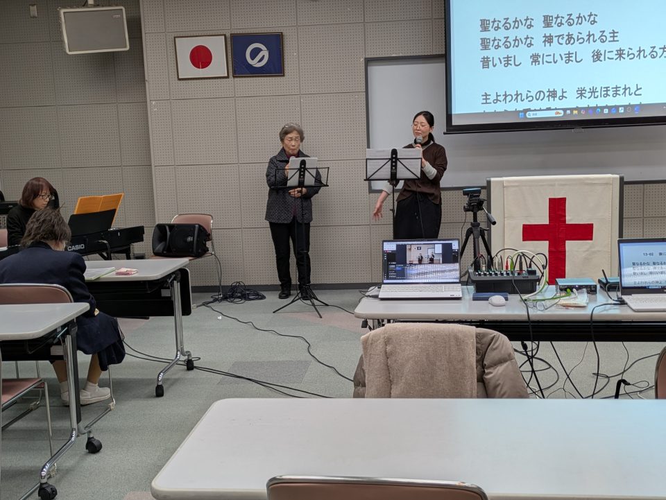 賛美の練習、配信の準備が進められています。