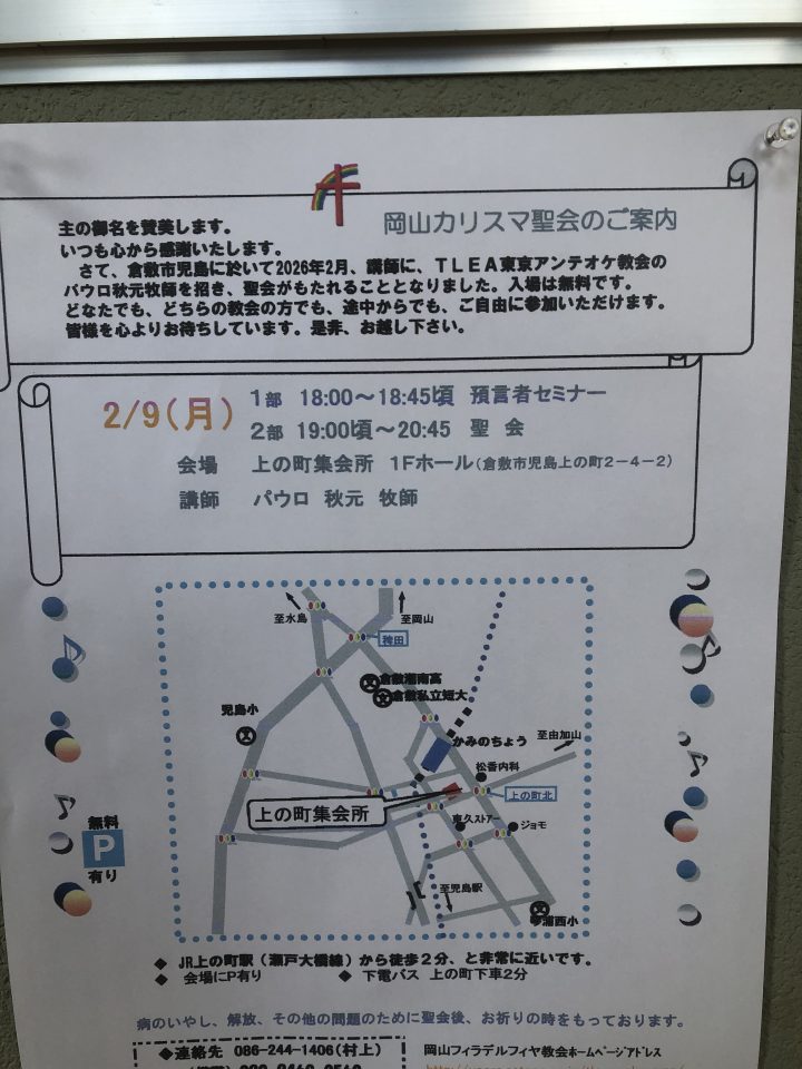 本日より中国カリスマ聖会がもたれますが、昨日からの雪の影響で広島を中心に山口まで高速道路が通行止めになっております。本日中に通行止めが解除になるようにお祈りください。。下関 ヨハネ