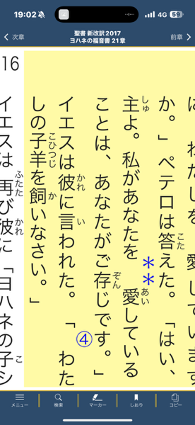 聖書箇所はヨハネの福音書21章15節です。