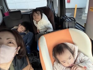 聖会へ向かいます。夜に備えて一人お昼寝中です。
