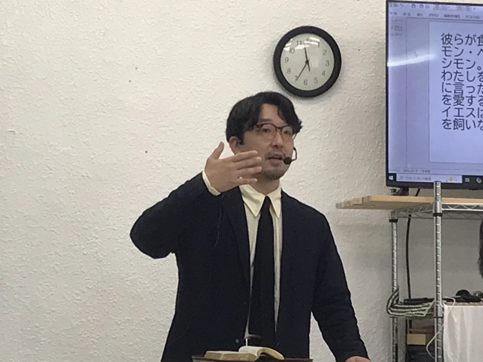 漁師だったペテロ。他の者が裏切ったとしても私は従う!しかし罪を犯して砕かれる。復活の主を見ても、私は漁に行くと、以前の生活に戻って行こうとしている。が共にいてくださる。従え!でなく私を愛しますか?と言われる。主に信頼する。主は導いて下さる。