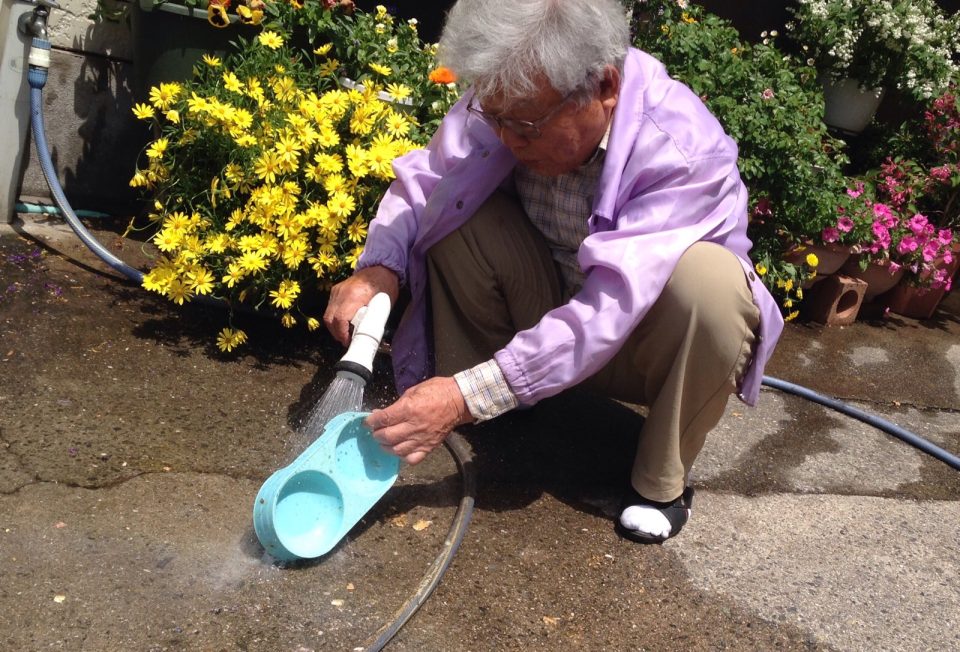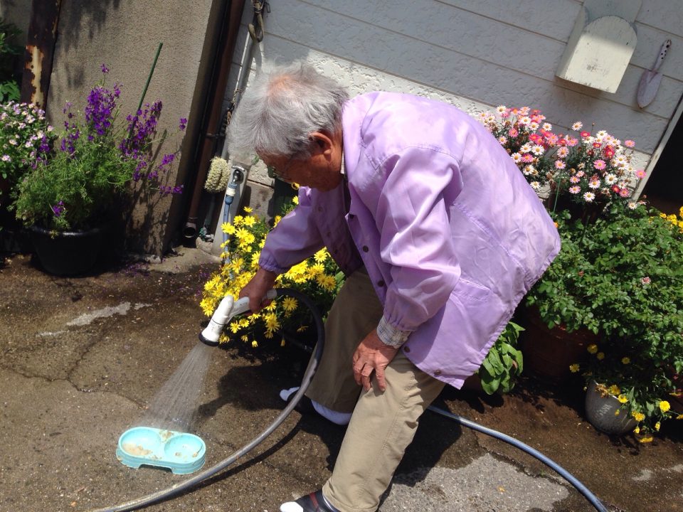 お父さん、かわいいヒヨコの食器を洗ってます。 岡山 村上ょ